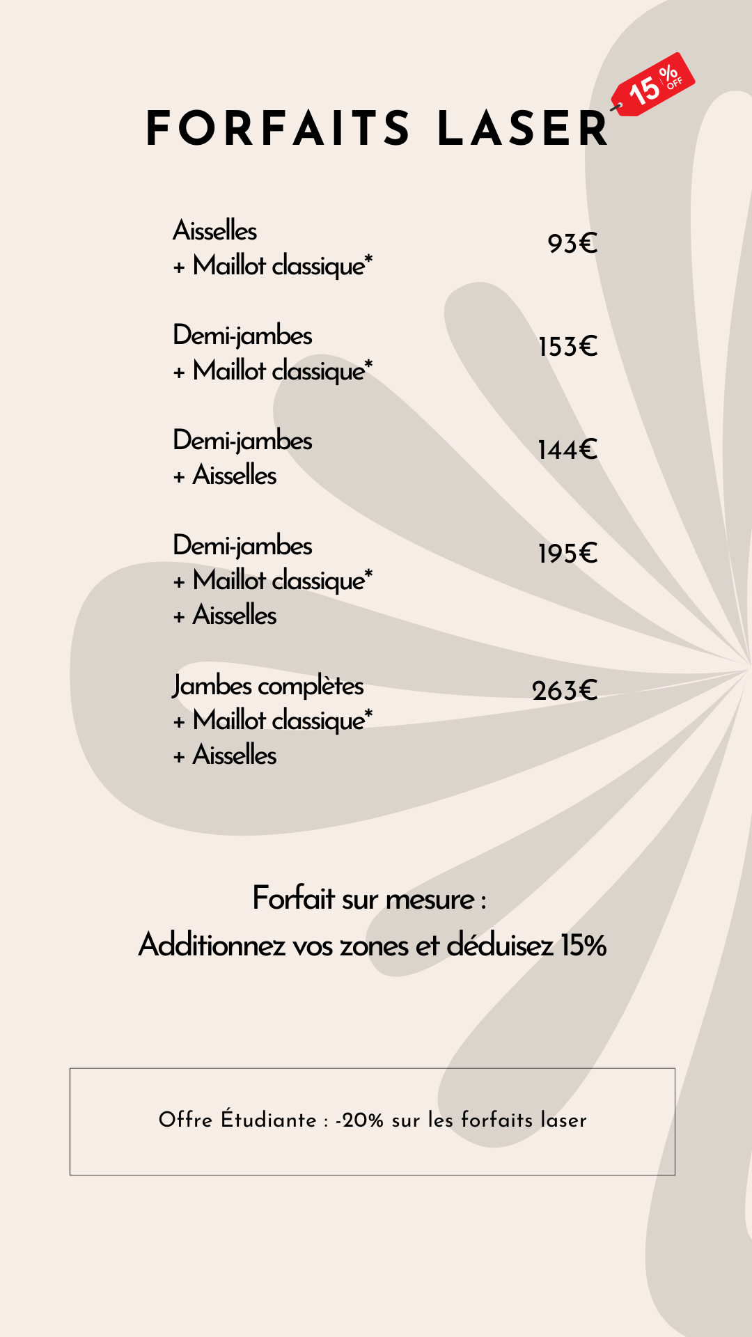 Les étudiants bénéficient d’une réduction de 20 % sur tous nos forfaits d’épilation laser. Cette offre exclusive est conçue pour rendre nos services haut de gamme accessibles à tous.